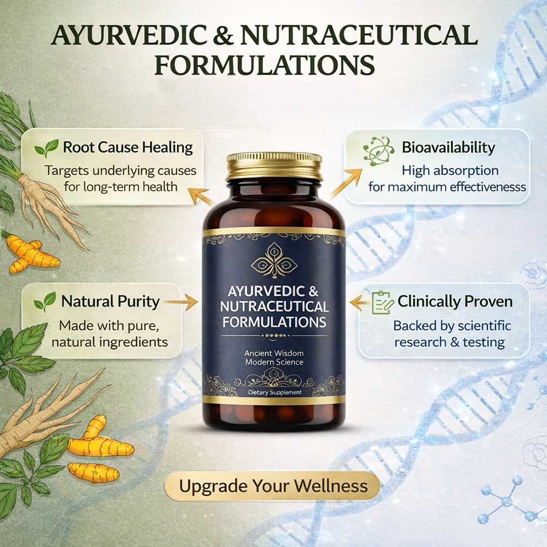 Formulations based on Ayurvedic wisdom and nutraceutical science to meet modern wellness needs.