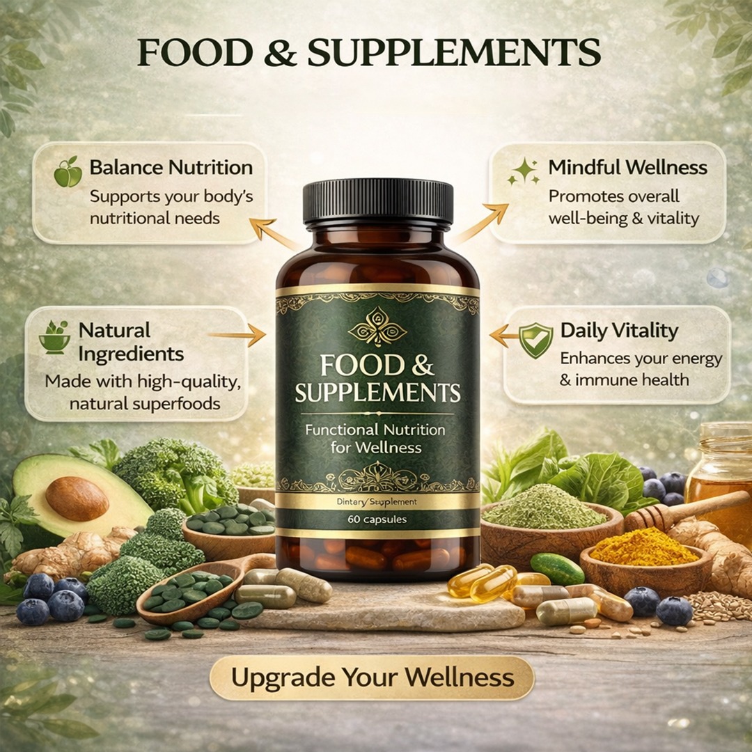 Functional foods and nutritional supplements that support a balanced and mindful lifestyle.